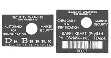 Each batch is DNA specific to an individual client. The fluid can be used to mark almost any asset including plastic, rubber, leather, vinyl, wood, cloth and most metals including steel & aluminium.